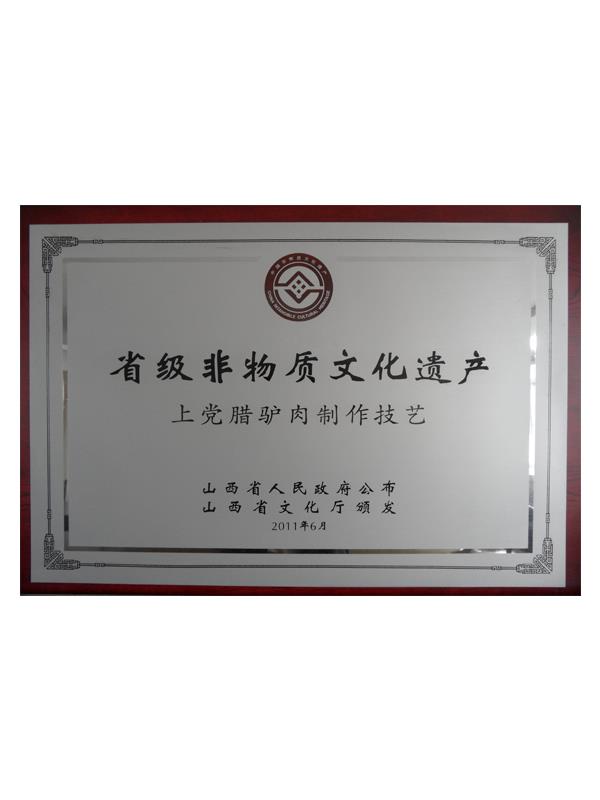 《本草綱目》第五十卷記載有:“驢肉味甘、無毒、解心煩、止風(fēng)狂、能安心氣、補血益氣、治遠年勞損”的作用,尤其對失眠、健忘、眩暈、營養(yǎng)不良、貧血癥有獨特療效。上黨臘驢肉是山西長治市的漢族傳統(tǒng)名吃,其肉質(zhì)肥而不膩、瘦而不柴、香味四溢、回味無窮。早在明代,臘驢肉就已馳名于上黨和晉南地區(qū),產(chǎn)品遠銷北京、天津、南京等南北名城。臘驢肉與當?shù)氐臎龇邸⑺只馃环Q為潞安府(長治古稱潞安府)三寶。